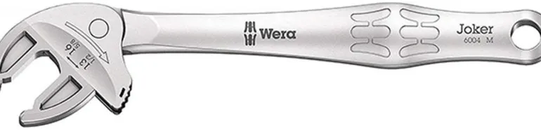 Wera 6004 Joker on itsesäätyvä kiintoavain, joka kattaa kaikki metriset ja tuumaiset kiinnikemitat vastaavissa käyttökohteissa. Portaattomasti liukuvien leukojen avulla voidaan korvata monta erikokoista kiintoavainta yhdellä. Avain säätyy automaattisesti asettaessasi sen kiinni pulttiin tai mutteriin. Integroitu vipumenkanismi puristaa mutterin tai pultin tukevasti leukojen väliin, mikä vähentää merkittävästi poisluiskahtamisen ja vahinkojen riskiä. Räikkätoiminto takaa nopean ja sujuvan ruuvauksen, ilman avaimen irrottamista pultista tai mutterista. Leukojen pienen hammastuksen ansiosta pystyimme toteuttamaan vain 30°:n palautuskulman.