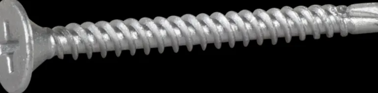 ESSVE Porakärjellä varustettu ESSVE- ulkokierre kipsilevyruuvi, Ø3,5 mm, tarkoitettu kipsilevyn kiinnittämiseen ulkoseinän ulkopuolelle teräskoolaukseen. Ruuvi on valmistettu karkaistusta teräksestä, Silver CorrSeal -pinnoitteen ansiosta se soveltuu käytettäväksi ulkotiloissa.