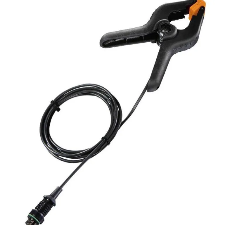 Testo 06155505 on kiristinanturi putkien lämpötilan mittaamiseen Testo 440:een ja 400:aan, halkaisija 6-35 mm. Anturin mittausalue -40 … +125 °C ja tarkkuus ±1 °C (-20 … +85 °C).