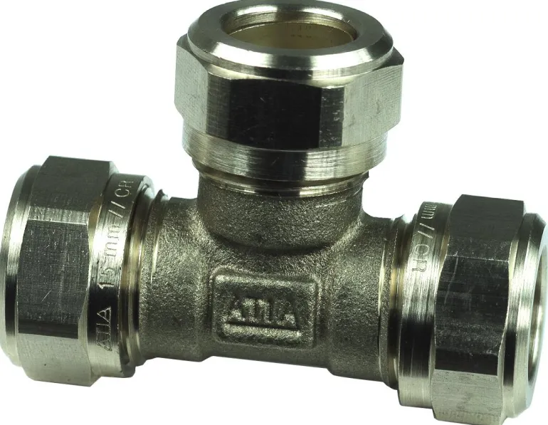 T-muotoinen kiristysrengasliitin ja tukiholkki.
