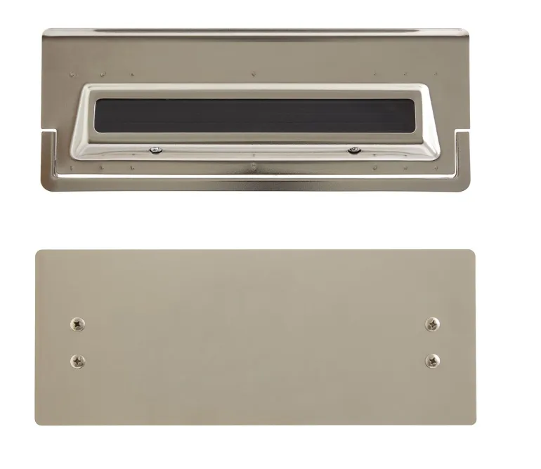 Postiluukku puristettua terästä, musta merkintäosa sekä takaluukku. Täyttää ääniteknisen luokan 35 dB asennettaessa puuoveen.