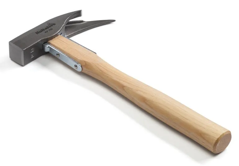 Vahva kirvesmiehen vasara, jossa piikki ja nelikulmainen lyöntipinta. Varsi on kiinnitetty päähän kahdella teräskiskolla.
