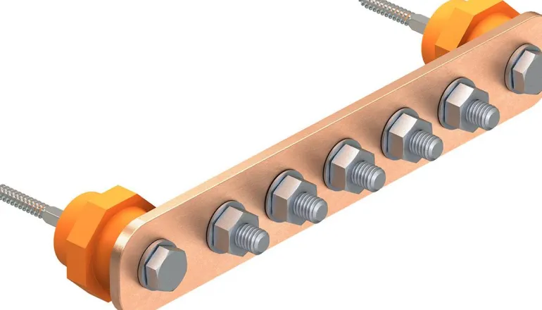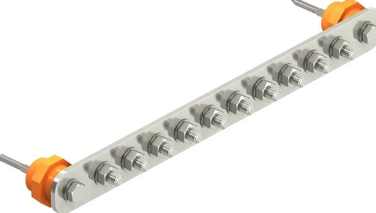 Teollisuuskäyttöön. Varustettu eristetyillä välikkeillä seinäasennusta varten. M10-pultit ja -mutterit potentiaalitasausjohtimien liittämiseen. Kuparista tai ruostumattomasta teräksestä varustettu malli sekä 5 tai 10 liitäntää. Lisävarusteena on saatavilla ruostumattomasta teräksestä valmistetut suojukset ja kiinnityslevy litteiden nauhojen liittämistä varten.