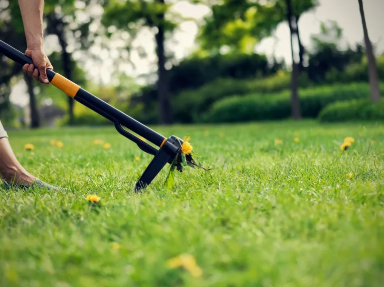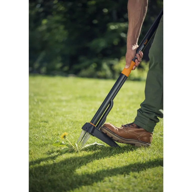 Kitkijä, jossa on 4 ruostumattomasta teräksestä valmistettua metallipiikkiä rikkaruohojen poistamiseksi helposti juurineen. Ergonomisesti muotoiltu kahva.