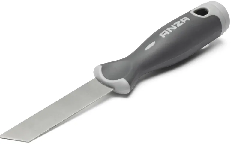 Anzan ruostumattomasta teräksestä valmistettu kittiveitsi, jossa vasarapää ja ergonominen kumipinnoitettu kahva. Ikkunoiden kittaukseen.