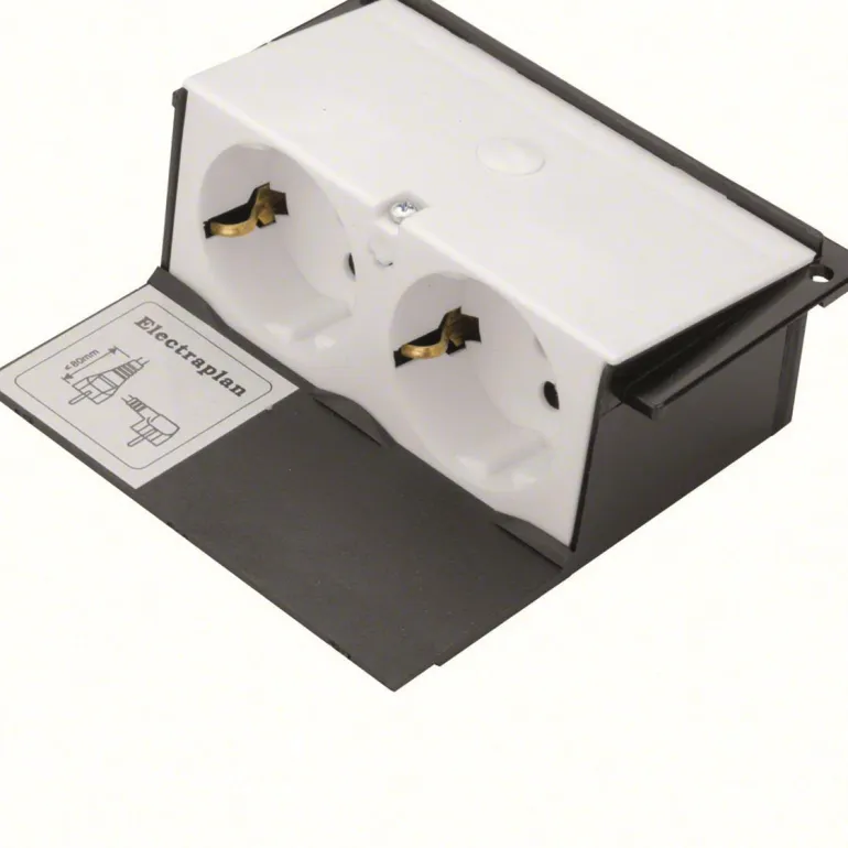 Hager GBES29010 on kojekannake (asennuskehys) puhtaanvalkoisella 2-osaisella pistorasialla lattiarasiakansille KDQ08/KDE04. 2-osainen Schuko-pistorasiamoduuli, sisältää 2 vedonpoistinta.