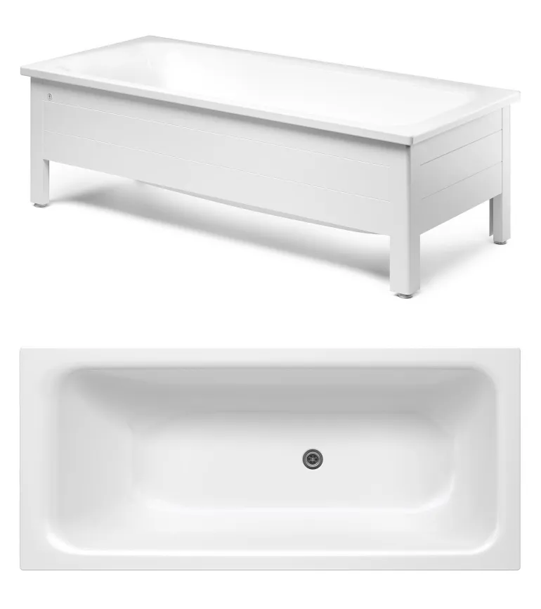 Kokokehikon jalusta, joka sopii Gustavsbergin 1700 x 700 mm:n kylpyammeisiin. Alaosa voidaan nostaa ylös siivouksen helpottamiseksi, ja kokokehikko jättää tilaa putkistolle.