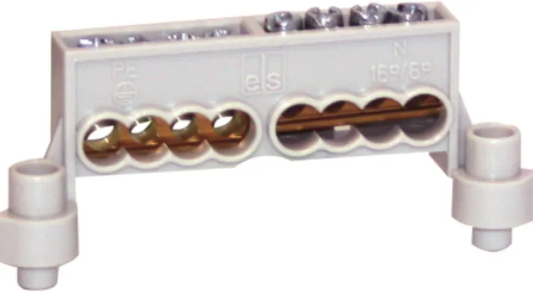 PE/N-puristuskisko, asennettavaksi AK/AKi:n pieneen vakiokoteloon lisäpuristimina tai vaihtotarpeen mukaan.