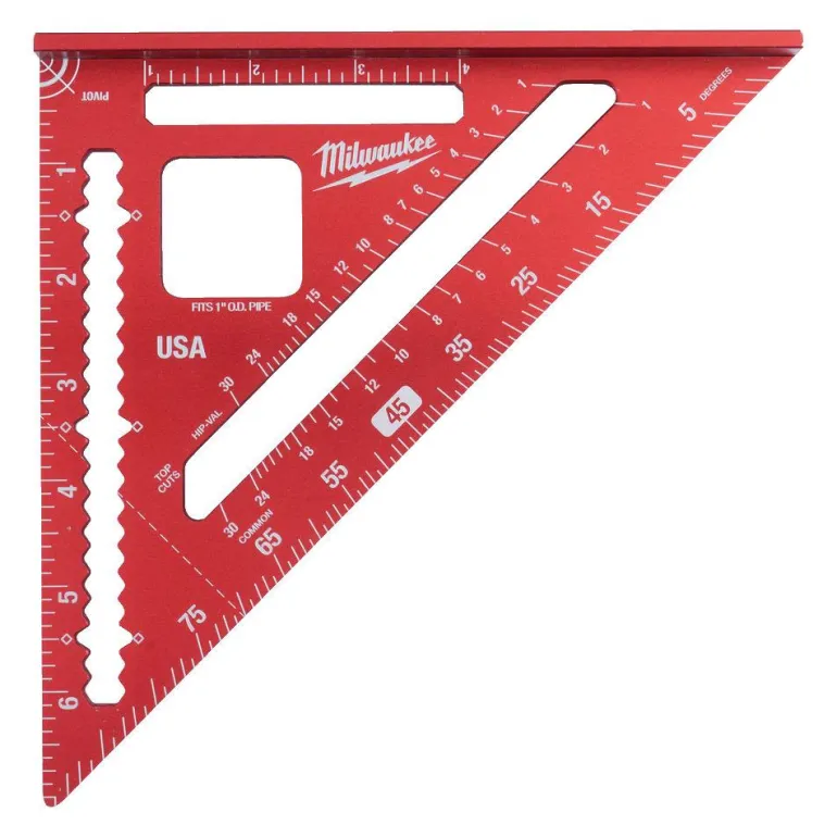 7″ tuuman pituinen kolmiosuorakulma, jossa tarkat merkintälovet jotka helpottavat merkintöjen tekemistä. Varustettu näkyvillä laseretsatuilla merkinnöillä. Kolmiosuorakulmassa on lisäksi reikämerkinnät, jotka helpottavat putkien leikkaamista. Lisäleveys parantaa pitoa.