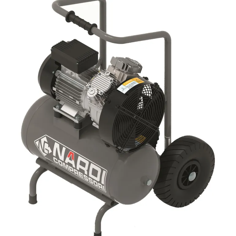 Sähkötoiminen öljytön kompressori, jonka enimmäiskäyttöpaine on 10 baaria ja säiliö 25 litraa. Varustettu pyörillä ja kahvoilla, jotka helpottavat liikkumista.