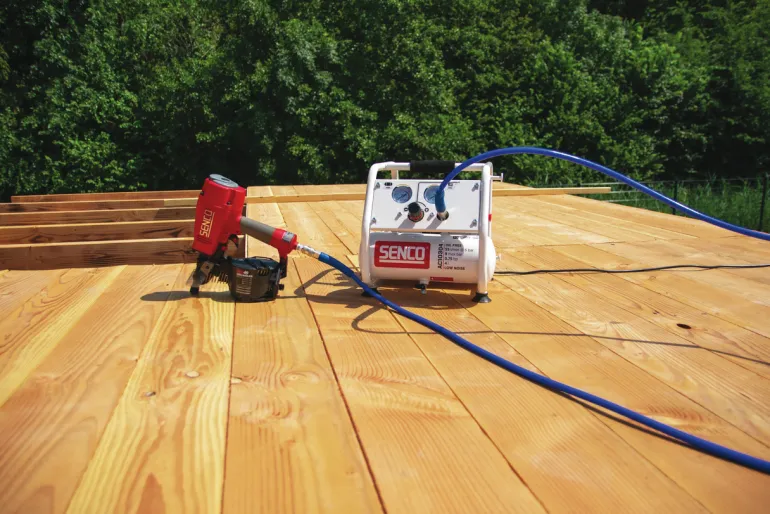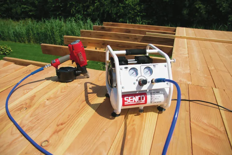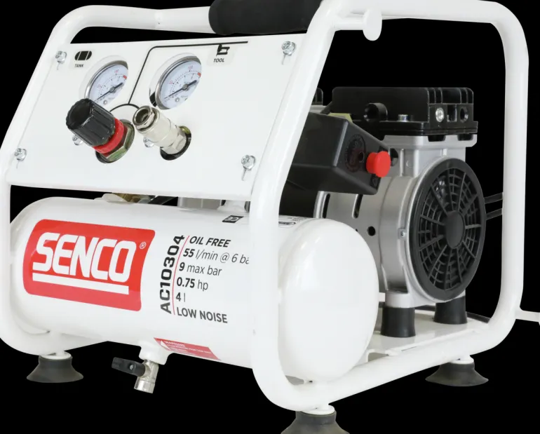 Hiljainen kompressori, joka soveltuu käytettäväksi dyckert-naulainten ja hakasnaulainten kanssa. Kompakti, kannettava ja hiljainen – vain 60 dB. Kompressorin työpaine on enintään 9 bar ja se tuottaa jopa 103 l minuutissa.
