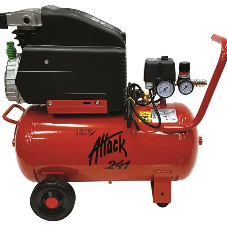 Attack 241 on kompressori, jossa on 24 litran säiliö, manomertri, varoventtiili, paineenalennusventtiili ja pikaliitin. Kompressorin maksimityöpaine on 8 bar ja kierrosluku 2800 kierr./min.