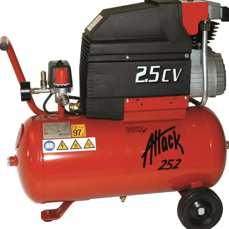 Attack 252 on kompressori, jossa on 24 litran säiliö, manomertri, varoventtiili, paineenalennusventtiili ja pikaliitin. Kompressorin maksimityöpaine on 10 bar ja kierrosluku 2850 kierr./min.