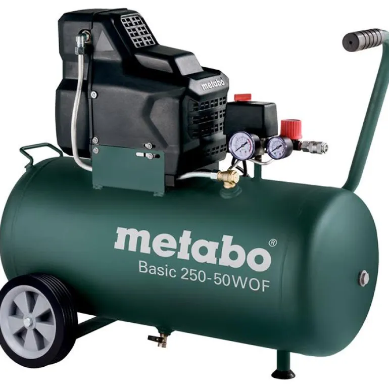 Metabo Basic 250-50 W OF on tehokas ja kestävä kompressori yksinkertaiseen ammattikäyttöön. Öljytön mäntäkompressori, jota on helppo kuljettaa ja vaatii vain vähän huoltoa. Laitteen työpainetta voi säätää paineenrajoittimella ja manometrilla. 50 litran säiliö.