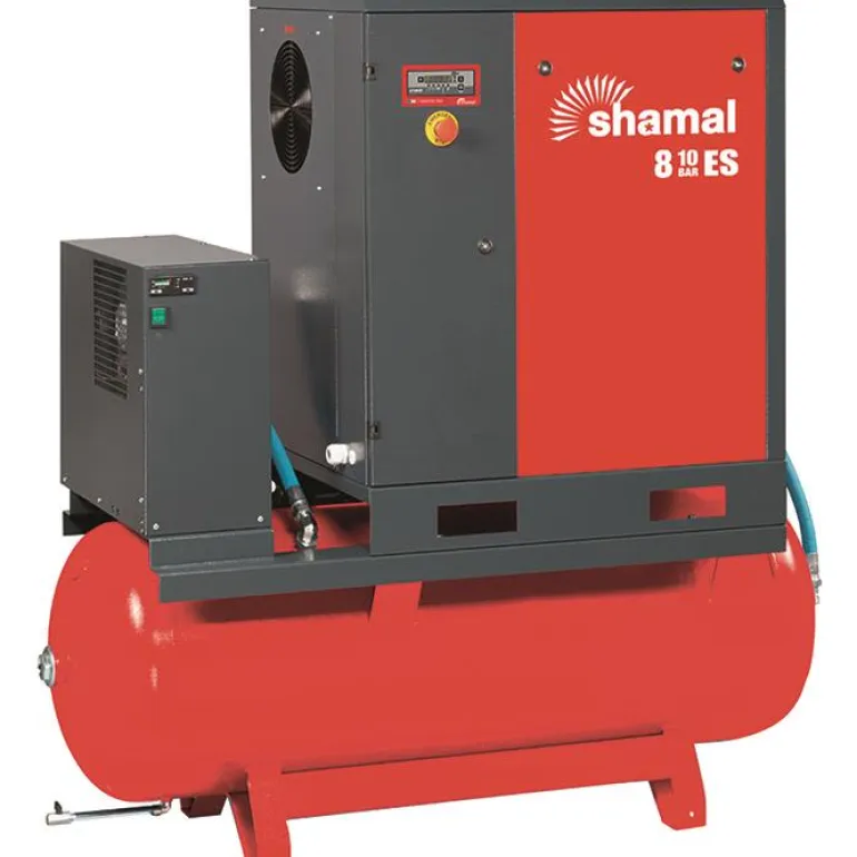 Shamal Storm 8-8-270 ES on kompressori, jossa on säiliö ja jäähdytyskuivain, jonka suurin ilmanpaine on 8 baaria ja moottorin teho 7,5 kW.