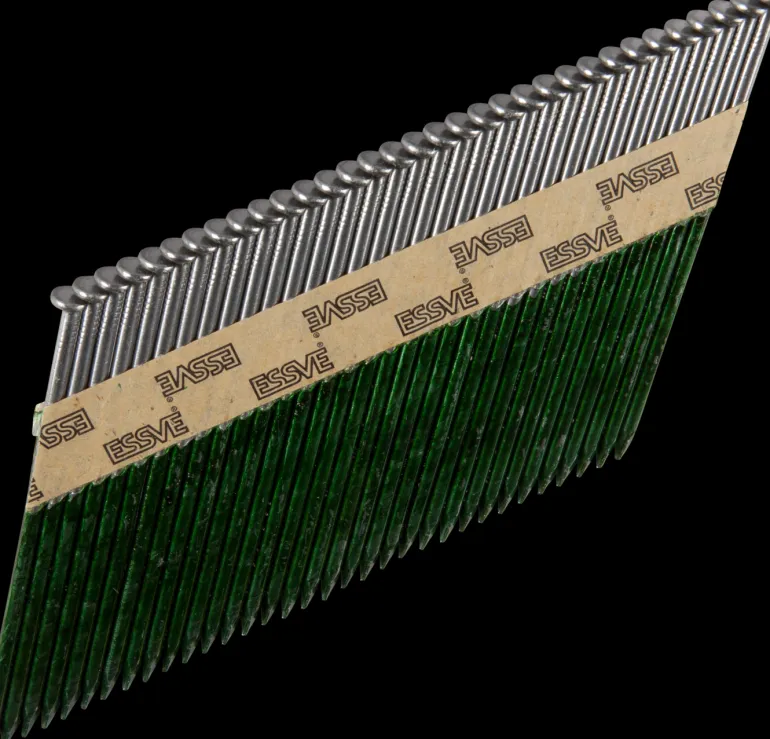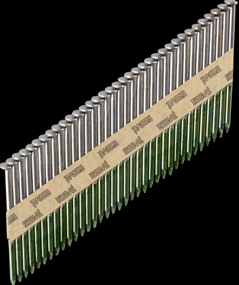 Suoranauhoitettu konenaula, 34°, sileä, kiiltävä. Sopii kaikkiin perustyökaluihin, jotka käyttävät 34°:n nauloja.