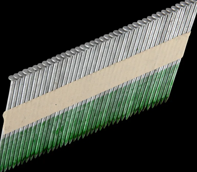 Suoranauhoitettu konenaula, 34°, sileä, kuumasinkitty. Sopii kaikkiin perustyökaluihin, jotka käyttävät 34°:n nauloja.