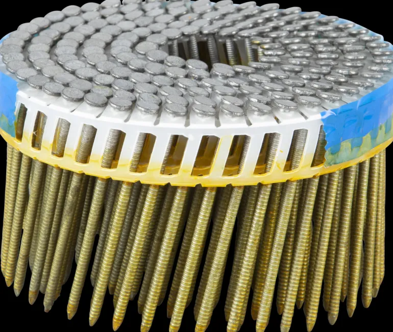 Muovinauhoitettu konenaula, 15°, kuumasinkitty. Sopii kaikkiin perustyökaluihin, jotka käyttävät 15°:n muovinauhoitettuja nauloja.