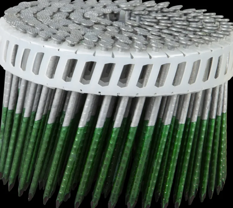 Lankasidottu konenaula, 15°, urahakattu ja kuumasinkitty. Sopii kaikkiin perustyökaluihin, jotka käyttävät 15°:n nauloja.