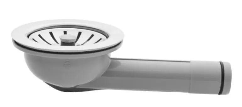 Koripohjaventtiili Ø115 mm, jonka korkeus 57 mm. Integroidulla putkella. Sopii tiskialtaisiin, joiden reiän koko Ø85-91 mm.
