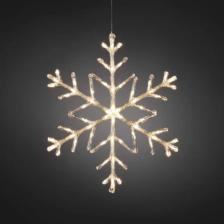 Konstsmide 4440-103 on lumihiutaleen muotoinen koristevalaisin. Lumihiutaleen halkaisija on 40 cm. Lämpimän valkoiset LED-valopisteet. Sopii ulkokäyttöön.