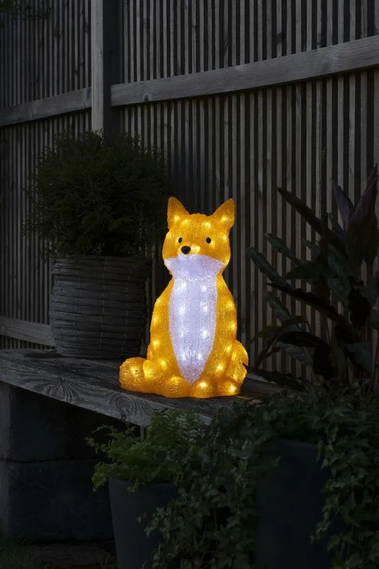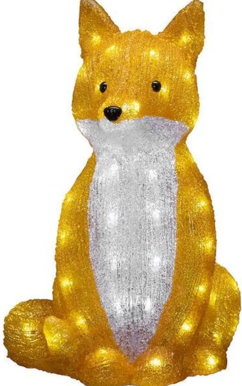 Istuva kettu, jonka korkeus on 40 cm. Virtalähteenä on muuntaja ja siinä on viiden metrin liitäntäkaapeli.