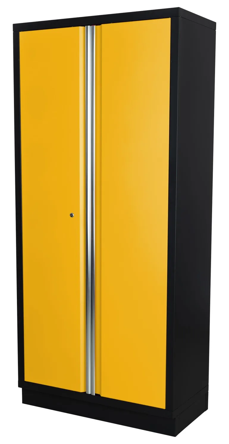 Tyylikäs keltamustaksi maalattu työkalukaappi sopii yhteen PELA-autotallikalusteen 519759 kanssa. Lattiakaappi on varustettu 4 hyllyllä, joiden korkeutta voi säätää.