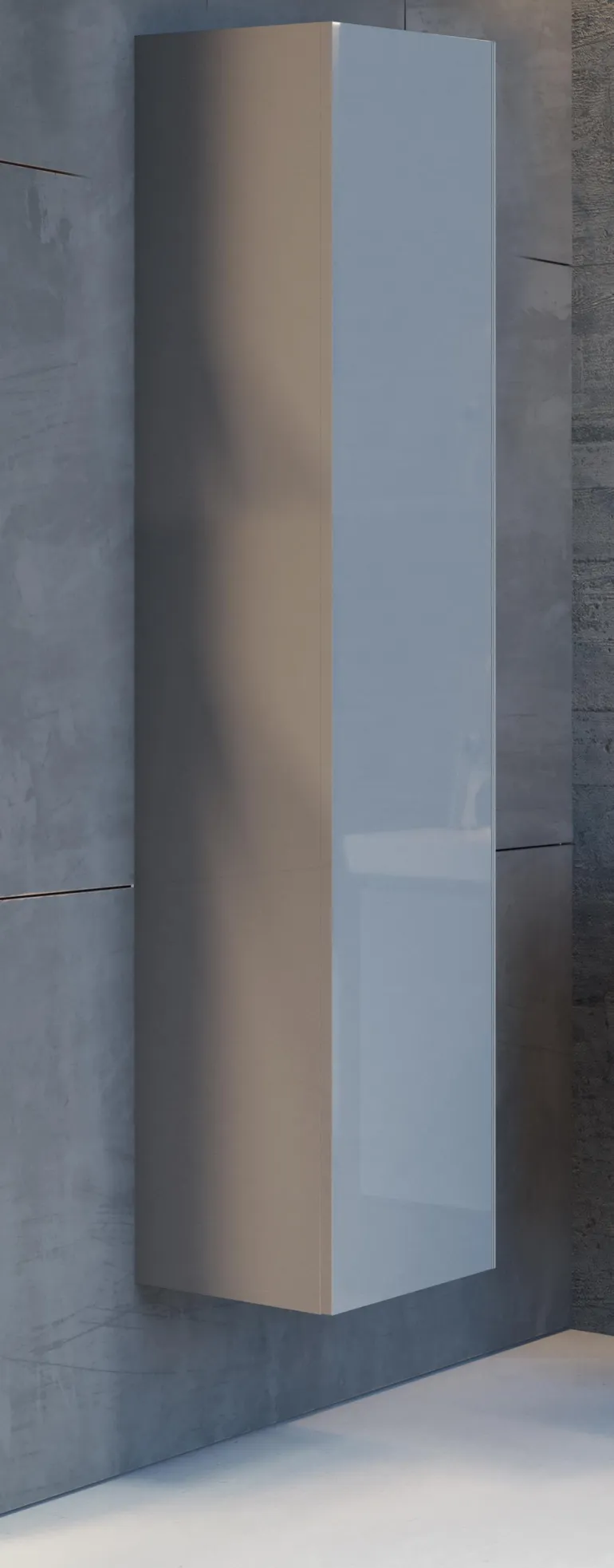 Korkea harmaa kaappi, joka sopii yhteen Victoria-huonekalusarjan kanssa. Kaappi on varustettu 1 ovella, jonka saranat ovat vasemmalla, mutta se voidaan ripustaa myös oikealle.