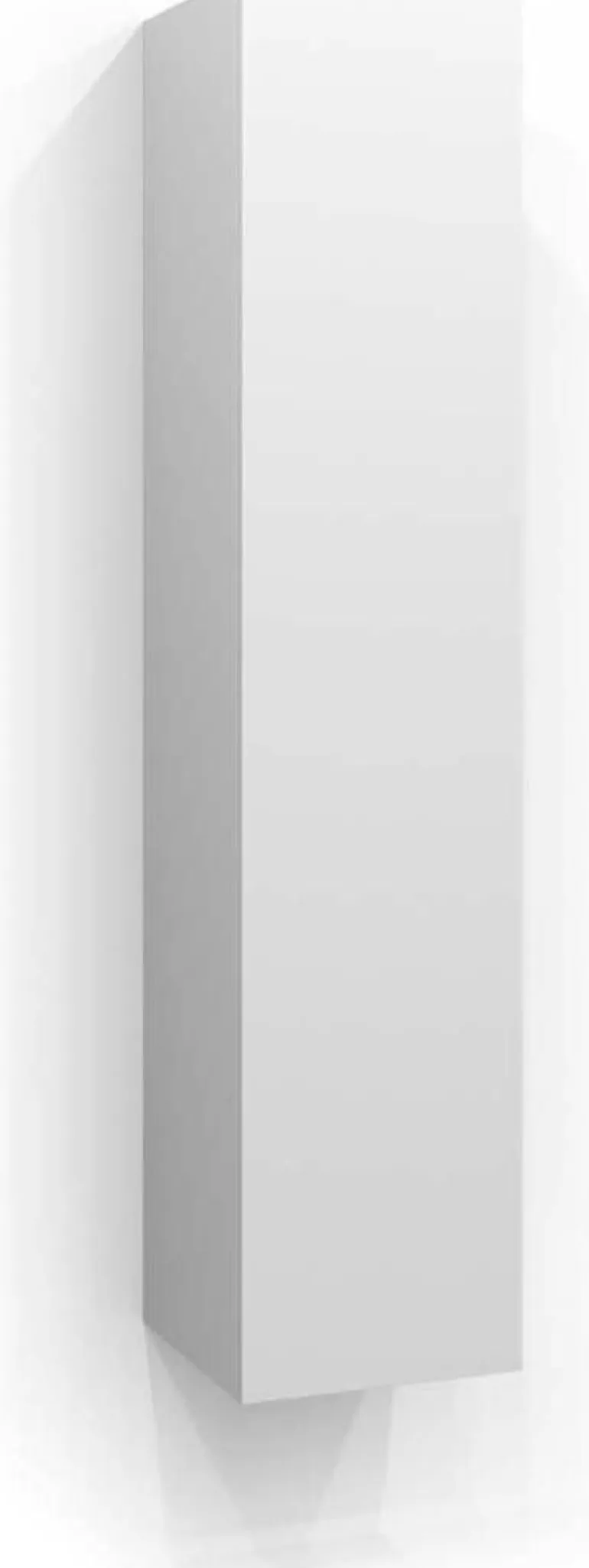Svedbergs 7160351 on valkoinen korkean kaapin runko 160×35 cm. Rungossa kaksi kalustelevyhyllyä ja kaksi lasihyllyä.