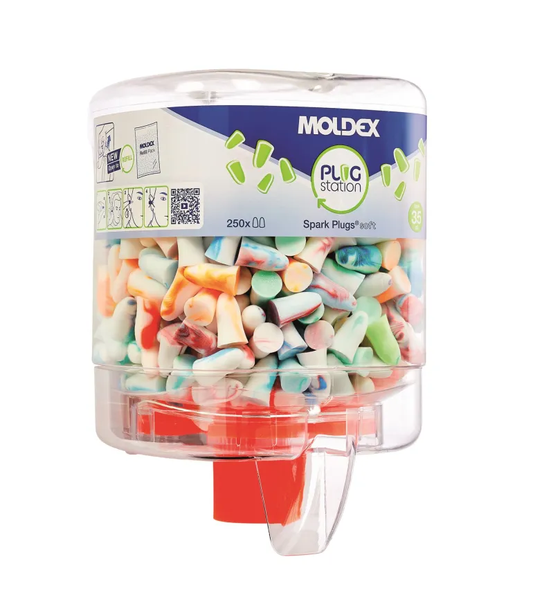 Moldex SparkPlugs on värikäs ja kivannäköinen kertakäyttötulppa, joka on valmistettu mukavasta PU-materiaalista ja soveltuu käytettäväksi korkeilla melutasoilla. Tulpat on muotoiltu korvakäytävän mukaan, mikä tekee niistä erittäin mukavia ja turvallisia korvakäytävässä. Koko Moldex-asema on kierrätettävissä ja se vaihdetaan jokaisella täyttökerralla. Toimitetaan annostelijassa, joka sisältää 250 paria tulppia. Seinäpidike ei sisälly toimitukseen, tilaa erikseen.