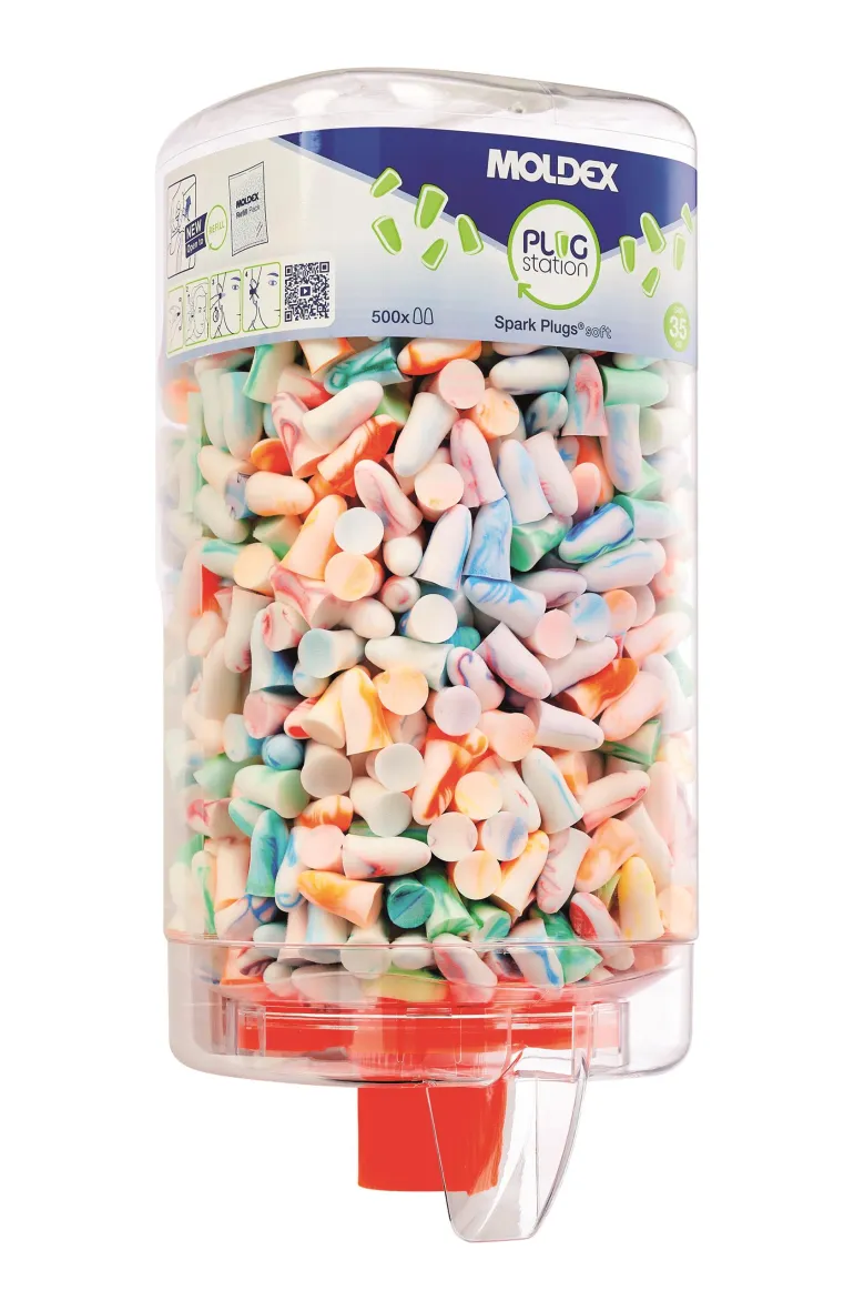 Moldex SparkPlugs on värikäs kertakäyttökorvatulppa mukavasta PU-materiaalista, joka on muotoiltu korvakäytävän mukaan, joten tulppa istuu erittäin mukavasti ja turvallisesti korvakäytävässä. SparkPlugs-tulpat soveltuvat korkeisiin melutasoihin, ja ne toimitetaan annostelijassa, jossa on 500 paria korvatulppia. Seinäpidike ei sisälly toimitukseen.
