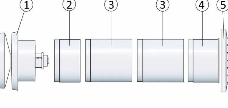 F100 Thermon sisäosa (tuote 870013/8823535, ilman pakkausta) soveltuu myös tuuletusluukkuun, kunhan luukun sisässä vain on tilaa termostaatin liikkumiselle (tilavaraus yht. 75 mm). Sisäosaa voidaan käyttää myös vanhan venttiilin päivittämiseen. Sisäosan putkiyhde on 45 mm pitkä, se sopii hyvin 100 mm:n kanavan sisään. Huom.: Tarkistathan, että olemassa olevan kanavan pää tulee läpivientiaukon suulle ihan luukun tasalle. Jos väliin jää rakoa, peitä se esim. kosteutta kestävällä silikonimassalla, muuten ulkoa tuleva ilma pääsee luukun sisään, mikä ei ole hyvä. Tarvittaessa voit jatkaa kanavaa moduuliputkella (tuote 188010/8823513), jonka halkaisija on 98/102 mm ja pituus 100 mm. Muovinen moduuliputki on helposti lyhennettävissä sahaamalla/leikkaamalla.
