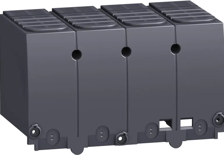 – Yläosa on varustettu liukuvilla säleiköillä, joissa on aihiot kaapelien tai eristettyjen kiskojen tarkkaa sovittamista varten. Takaosa on täysin erotettu kytkentäalueesta. Osittain leikatut neliöt voi irrottaa, jotta kunkin tyyppiset kaapelikenkä- tai kuparikiskoliitännät sopivat niihin.
