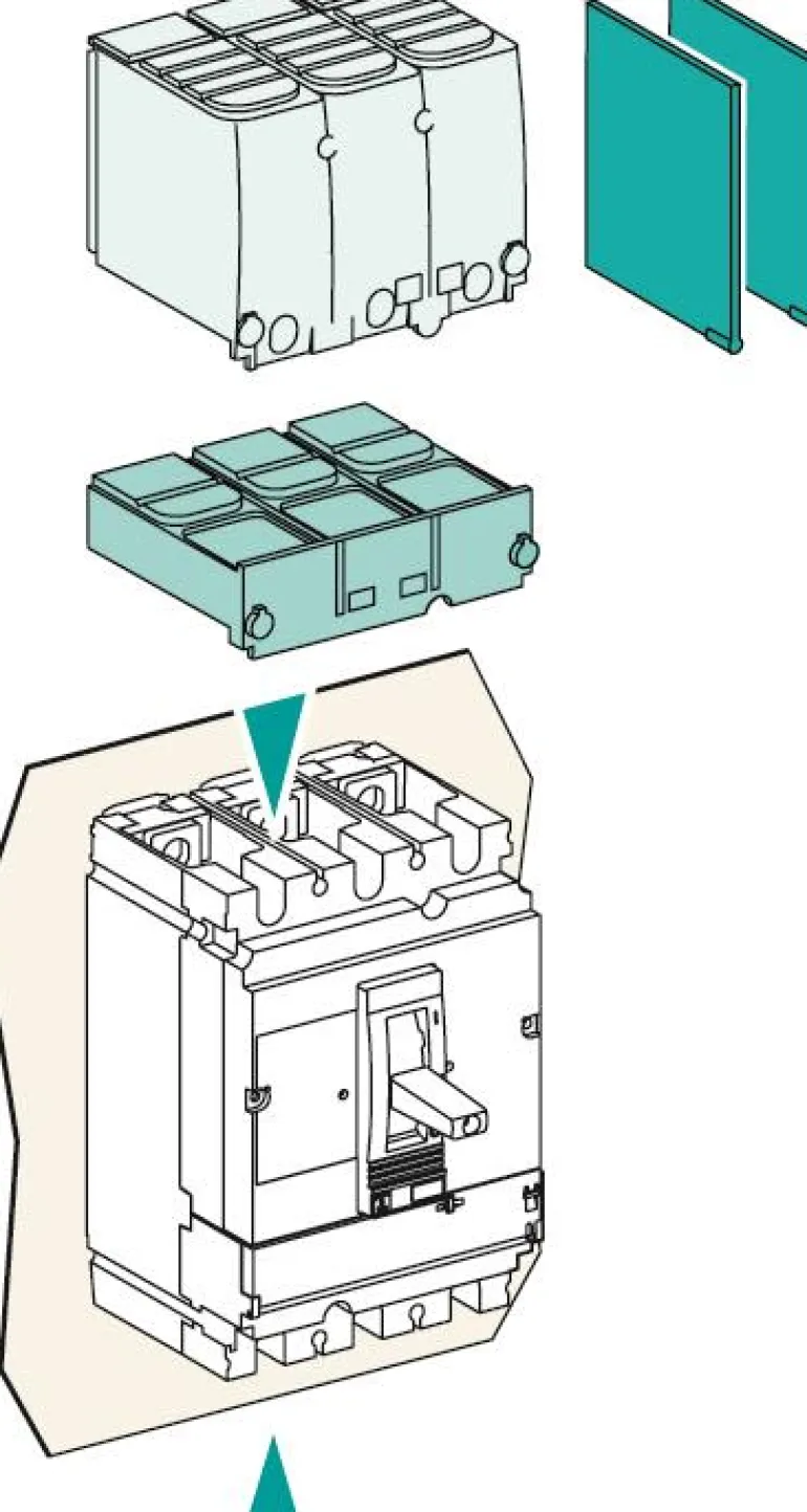 Kompakti NSX100 250 A:iin asti ja NSX400/630 3P tai 4P voidaan varustaa