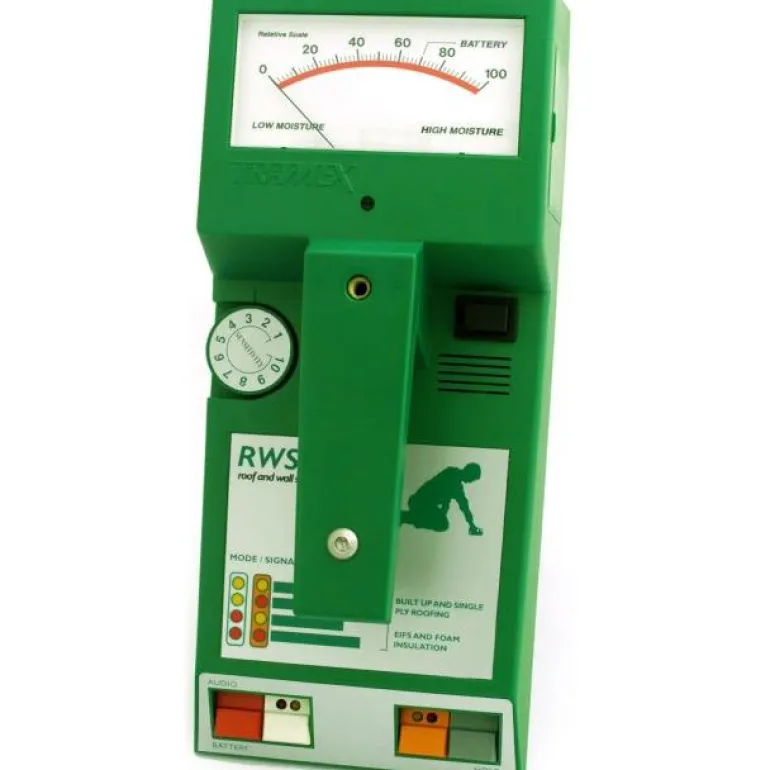 Tramex RWS on seinän ja katon kosteudenpaikallistaja, jossa on analoginen näyttö. Paikannussyvyys materiaalissa 10 cm alustaa tuhoamatta.