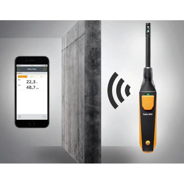 Kosteus- ja lämpötila-anturin 605i mittausalue 0–100 % suhteellista kosteutta ”Capacitive” -anturityypillä ja -20… +60 °C mittausalueella ”NTC” -anturityypillä. Bluetooth-langaton yhteys edellyttää iOS-versiota 8.3 tai uudempaa tai Android 4.3 tai uudempaa. Mobiililaitteessa on oltava Bluetooth 4.0. Anturi toimii kolmella AAA-paristolla, paristojen toiminta-aika on 150 tuntia. Käyttölämpötila-alue -20…+50 °C.