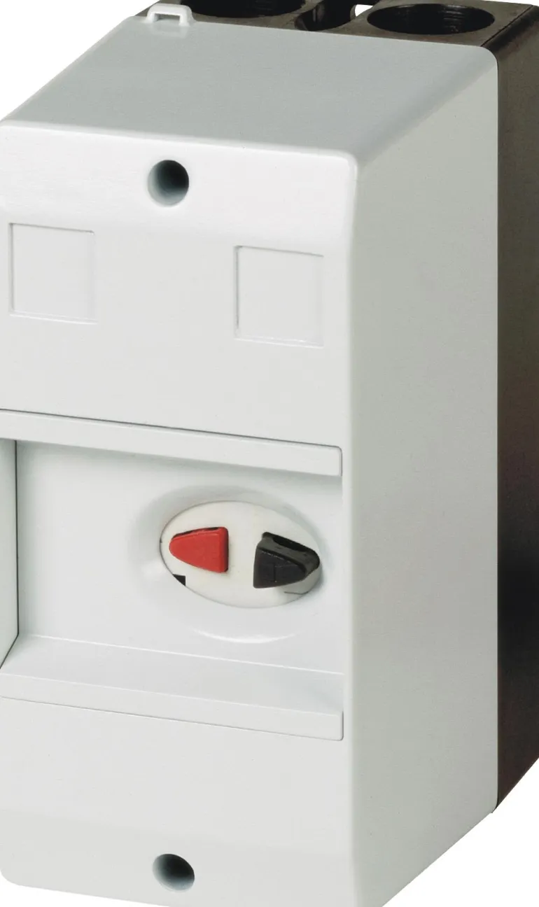 Kiinnikkeet 2xM25 kohokuvioitu, ylös ja alas. Tilaa moottorin suojakytkimelle PRM ja kahdelle kosketinlohkolle.
