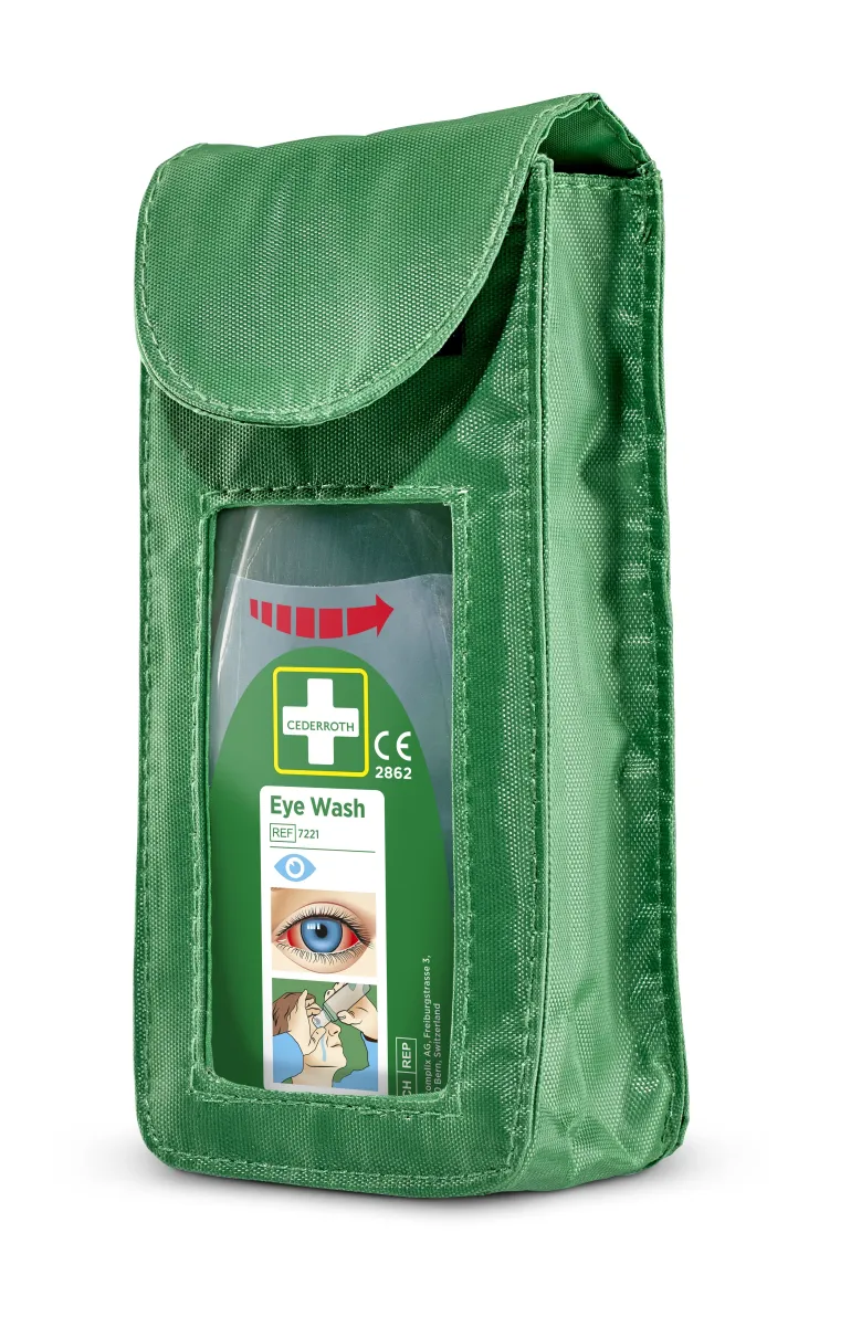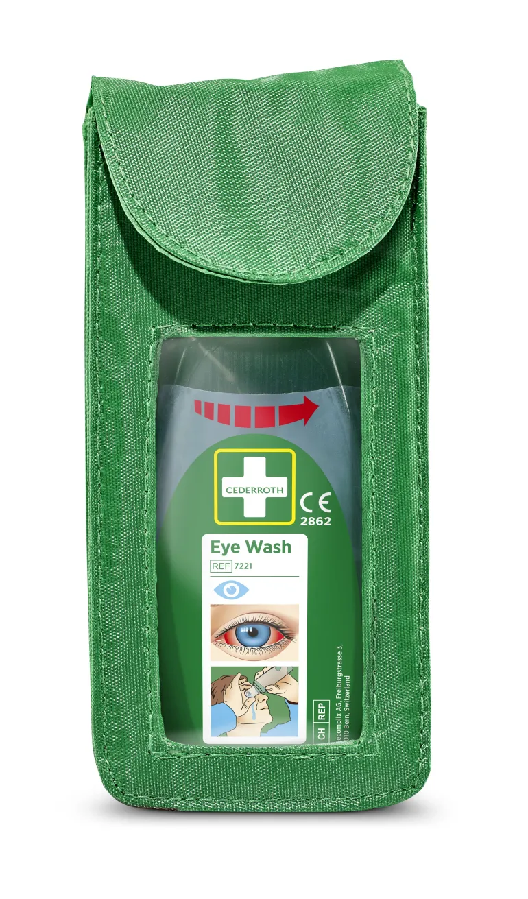Vyölle kiinnitettävä nylonkotelo taskukokoiselle silmäsuihkepullolle. Kotelossa pullo kulkee kätevästi vyöllä. Mitat (LxKxS): 8 x 16 x 4,5 cm.