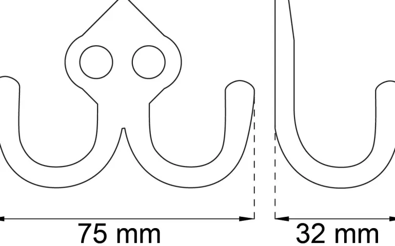 Kaksoiskoukku alumiinia. Ulkonema 32 mm.