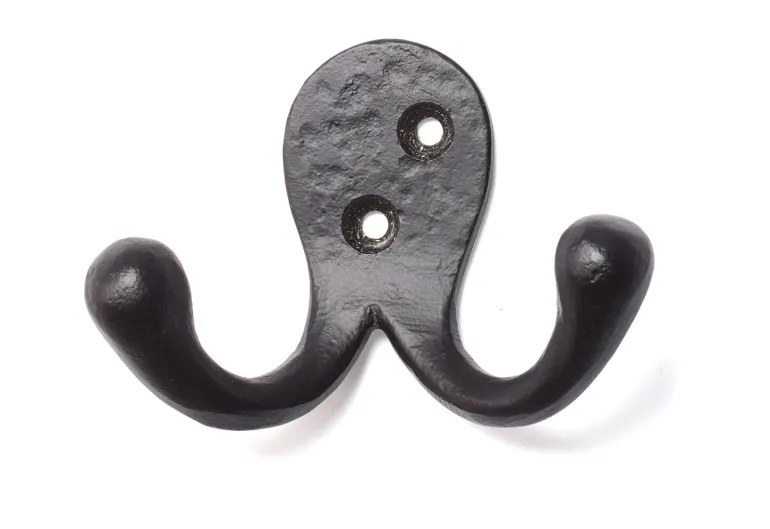 Kaksoiskoukku takoraudasta rustiikkisella ja maalaisromantiikkaa henkivällä tunnelmalla. Ulkonema 40 mm. Sisältää ruuvit.