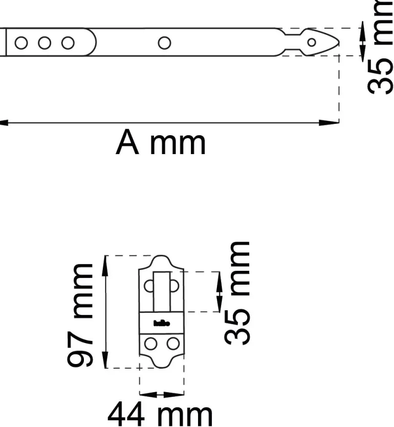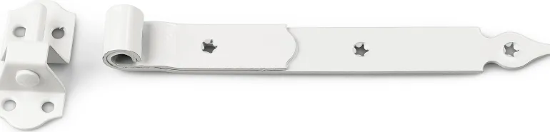 Teräksinen koukkusarana. Tapin halkaisija 12 mm. 35 x 300 mm. Mukana ruuvit. Pakkauksessa 2 kpl.