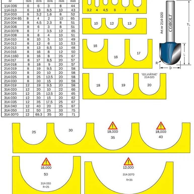Cobolt kourujyrsinterä koristeprofilointiin ja pintojen teksturointiin jne. D=12 R=6 L=10