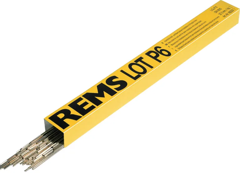 REMS Lot P6. 1 kg kovaa juotostinaa (tangot) ISO 17672-CuP 179, 2×2 mm, kupariputkien ja kupari-, punamessinki- ja messinkiliitosten juottamiseen kylmän ja kuuman veden asennuksissa, kaasuasennuksissa, jäähdytys- ja lämmitystekniikassa. Kartonkipakkauksessa.