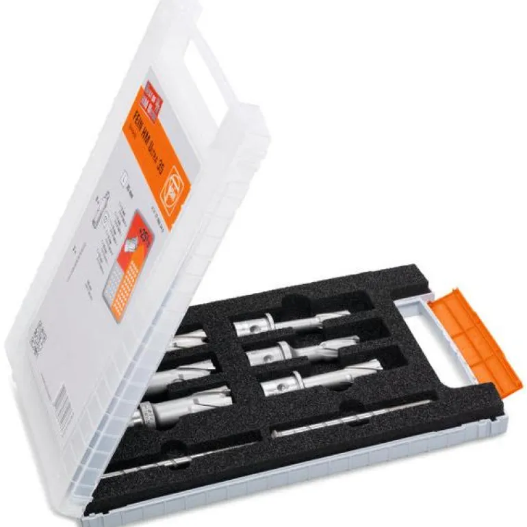 FEIN Best Of E-Cut on 8-osainen keernaporasarja, pitkä käyttöikä ja erinomainen höyläyskyky. Sarjaan kuuluu 6 keernaporaa Ø 12, 14, 16, 18, 20 ja 22 mm, joiden poraussyvyys on 35 mm, sekä 2 keskiökärkeä. Sarja toimitetaan muovilaukussa.