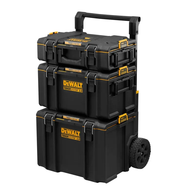 ToughSystem 2.0 -kuljetusvaunu irrotettavalla kahvalla helpottaa laatikoiden säilytystä, mikä mahdollistaa käytön lava-autoissa. Kannen tiivistys varmistaa, että laatikot ovat pölytiiviitä ja vesisuihkunkestäviä (IP65) ja kestävät kovia sääolosuhteita.