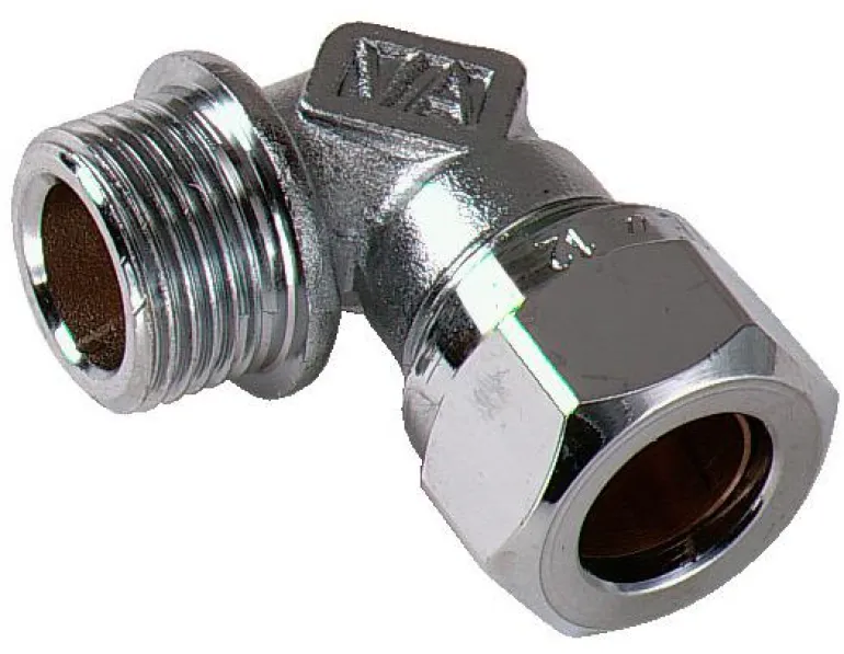 Kulma-adapteri messingistä, kromattu pintasuojaus. Adapterissa on 90° kulma ja se soveltuu kupariputkiin, teräsputkiin ja PEX-putkiin.