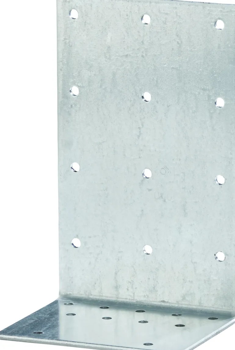 Kuumasinkitty kulmahela (20 µm) puun liittämiseen puuhun. Heloja voidaan mainiosti käyttää esimerkiksi aluspuiden ja seinän pystytukien väliseen liitäntään.