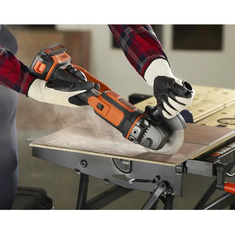 Black & Decker BCG720N-XJ on 18 V kulmahiomakone, jonka laikan koko on 125 mm ja enimmäisnopeus 8600 kierr./min. Mukana karalukko. Kulmahiomakone poistaa helposti ruosteen metallista ja leikkaa metalliputket.