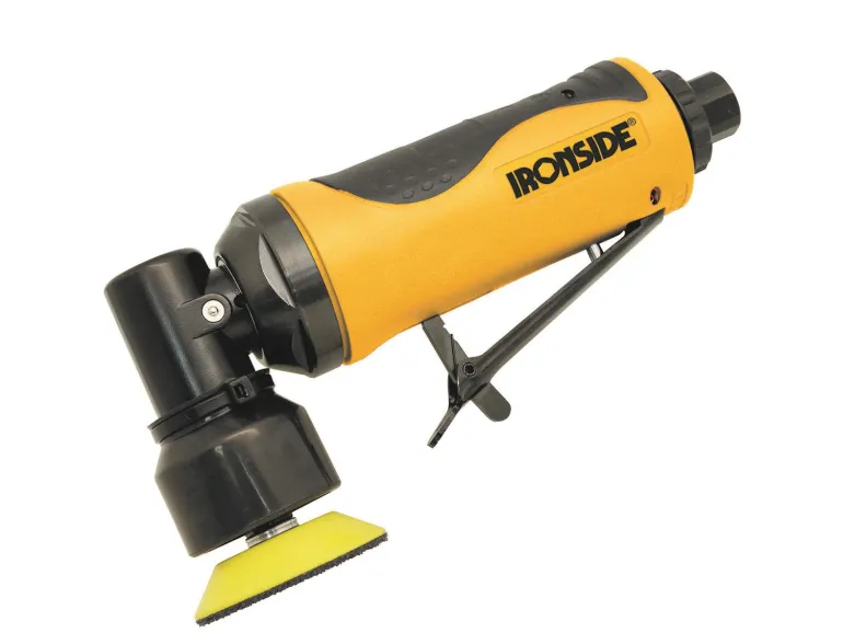 Pyörivä ja värähtelevä Ironside-kulmahiomakone, kehämäinen liike 3 mm. Pienten pintojen hiontaan, puhdistukseen ja kiillotukseen. Mukana 50 mm tarranauhalaikka. Matalan profiilin kulmakotelo. Ilmanpoisto taakse. Ilmanotto: 1/4. Ilmaletku: 3/8. Ilmanpaine: 6,3 baaria. Tärinä ilman kuormitusta: 1,13 m/s².
