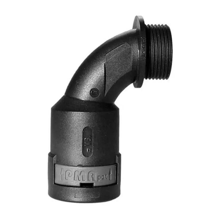 Kulmaliitin pikaliitännällä, joka sopii useimpiin letkuihin. Polyamidi 6 -materiaalia, joka takaa korkean iskunkestävyyden.